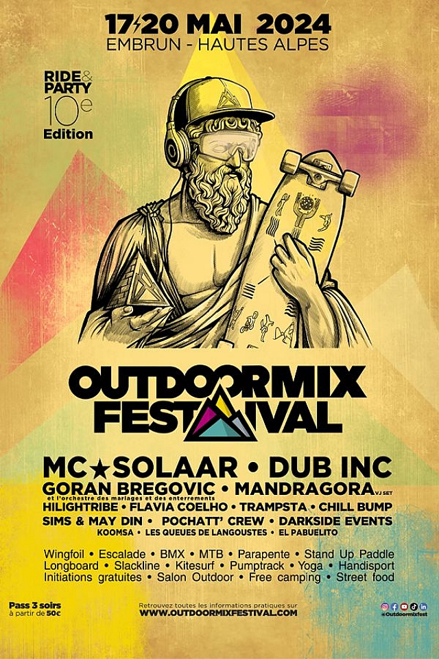 L'Outdoormix Festival, événement emblématique de la musique et des sensations fortes, célèbre sa 10e édition du 17 au 20 mai à Embrun. Avec une affiche exceptionnelle mettant en vedette des artistes de renommée internationale, l'événement promet trois soirées inoubliables.